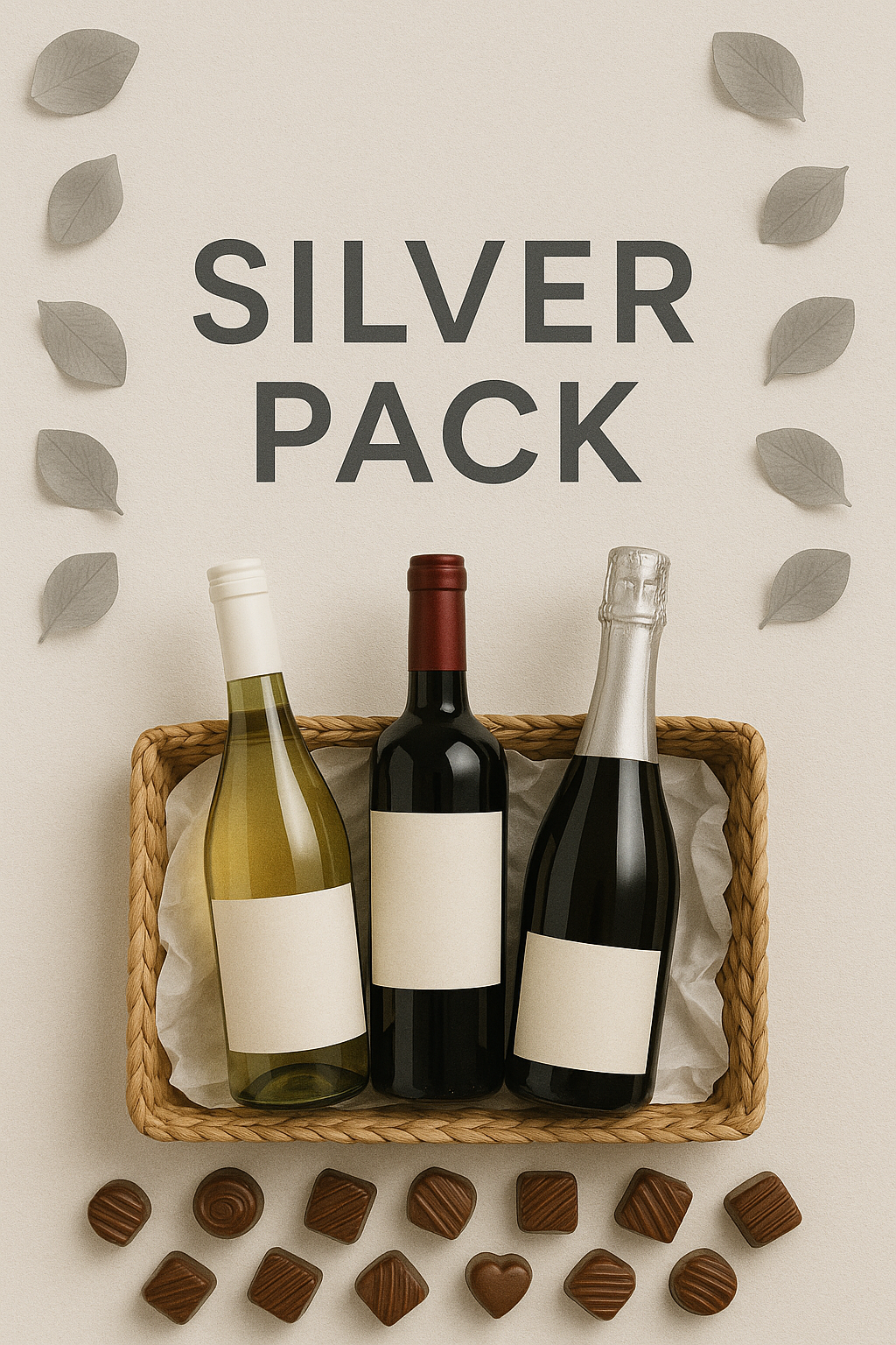Silver Pack – 39,90 € Incluye una selección de bombones y una botella a elegir entre vino blanco, tinto o cava. Un detalle elegante y perfecto para disfrutar en pareja durante la estancia en el Hotel Petit Mirador.